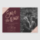 Typographie or rose sur personnalisable rouge bordeaux rose bloc de couleur or parties scintillant, et faux rose or bandes géométriques chic enregistrer le mariage date, parfait pour élégant, mariage élégant,