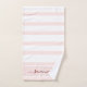 Moderne et girly en or rose, rayures rose et blanc. Personnalisez et ajoutez votre nom et votre lettre monogramme. Le nom est écrit avec un script de style à la main tendance avec des swashes. Lettres de couleur bordeaux. La lettre monogramme en blanc. Pour que les swashes ne suppriment que le nom de l'échantillon, laissez les espaces ou émoticônes devant et après le nom.