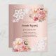 Une invitation élégante et romantique du 21ème (ou tout âge). Un fond dégradé d'or rose décoré de fleurs d'or rose et rose, de roses et de dentelle. Personnalisez et ajoutez un nom et des détails du parti. 1 feuille = 1 invite imprimé bord à bord.