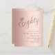 Une invitation design et moderne pour une fête du 80e anniversaire. arrière - plan rose dégradé or et le mot Eighty écrit avec d'élégantes grandes lettres de script en or rose foncé. Personnalisez et ajoutez un nom et des détails du parti. 1 feuille = 1 invite imprimé bord à bord.