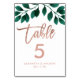 Écriture en or rose feuille verte blanc mariage numéro de table avec élégante typographie en or faux rose avec aquarelle feuille verte feuillage sur béton blanc, parfait pour le style industriel chic mariage
