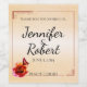 Ce design magnifique et amusant, appelé Rose orange et Mariage papillon, a une belle conception inspirée de la nature. L'arrière - plan est d'orange clair, avec un teint floral et une bordure d'orange sanguine plus foncée. Dans le coin inférieur droit, il y a un joli graphique rose avec un papillon assis sur un pétale. Parfait pour un mariage de jardin ou de printemps. Ce design est disponible en bleu, violet, rose et orange. S'il vous plaît envoyez-moi un courriel pour les conceptions et les produits correspondants ou avec des demandes personnalisées à noteableexpressions@gmail.com. Cet ensemble contient des invitations, enregistrer les cartes de date, les cartes de réponse, les cartes de remerciement, les cartes de tente de numéro de table, les scellés d'enveloppe, les étiquettes de vin, les classeurs, les étiquettes d'adresse de retour et beaucoup d'autres pièces de papeterie mariage de jour, les faveurs et les cadeaux disponibles. Utilisez les autocollants de scellés d'enveloppe pour n'importe quel de vos cadeaux do-it-yourself - ceux-ci sont disponibles en grandes et petites tailles! Tous les éléments sont imprimés sur nos produits de haute qualité, ils n'incluent pas d'or, de bijoux, de gaufrage ou d'autres éléments textiles. Tous les dessins sont copyright Noteable Expressions, Inc. Tous droits réservés.