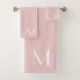 Serviette de bain Set avec couleur solide rose douce arrière - plan et police blanche.Design simple et tendance par Alma Wad .Personnalisez-le avec votre monogramme maintenant ..