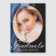 Envoyez à votre famille et à vos amis cette parties scintillant élégante 2025 et glam personnalisé graduation photo carte magnétique faire-part pour les wow. Ce design modèle moderne comprend une photo pour vous changer à votre propre encadré en parties scintillant d'or rose faux avec une bordure d'art abstrait bleu marine et or rose à gauche et noir à droite. Sous votre photo, on peut lire "Graduate" dans la typographie moderne en écriture blanche avec votre nom, l'école et l'année pour personnaliser. Conçu par Susan Coffey.