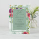 Ce faire-part de mariage fleuri est magnifique pour les mariages d'été ou du début de l'automne, mais convient à toutes les saisons. Le devant présente votre texte de mariage personnalisé en vert foncé contre un arrière - plan vert pâle. La zone de texte est encadrée d'une jolie aquarelle à fleurs roses dans les tons rouge, bleu violet et vert, placée sur un arrière - plan d'aquarelle abstrait. Le verso de l'invitation correspond au vert.