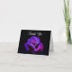 Une carte de remerciement élégante. Une belle photographie d'une rose de couleur violette, bleue et rose sur un fond noir illuminé par un seul projecteur créant un éclairage spectaculaire qui met vraiment en valeur la beauté de cette fleur, qui est recouverte de délicates petites gouttes d'eau.