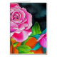 D'après une peinture originale à l'aquarelle d'art fin par l'artiste Sacha Grossel, cette peinture lumineuse et vibrante représente deux roses roses éclatantes en fleurs sur un fond orange et sombre texturé. Contemporain et moderne dans le style, ce design est coloré et stimulant.