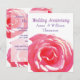 Carte d'anniversaire mariage avec photo rose rose. Facile à personnaliser votre couleur arrière - plan. Feminine et élégante.