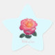 Rose mignon rose sur l'autocollant étoile arrière - plan turquoise clair. Le texte avec amour peut être personnalisé. Idéal pour envelopper les cadeaux, comme l'offre de fête, la décoration, et pour tout le reste. Une expression d'amour détail que tout le monde aimera.