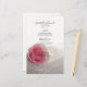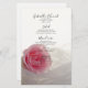 Customisez la jolie rose rose sur le menu Mariage blanc avec les détails du repas que vous pourrez servir à votre élégant déjeuner de la fête de jardin nuptiale, brunch post mariage ou dîner de réception mariage en ajoutant la salade ou le premier plat, entrée ou deuxième plat et dessert ou troisième plat. Personnalisez-le avec les noms de la mariée et du marié, du lieu de l'événement et de la date. Cette élégante carte mariage à fleurs personnalisée présente une photo florale d'une fleur de rose rose avec un voile de mariée blanc.