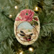 Une élégante Rose rose avec de minuscules bourgeons roses et un joli oiseau coloré en cercle de branches. Image d'une carte victorienne.