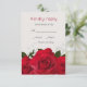 Elégante carte de réponse de mariage avec roses rouges et petites fleurs blanches.