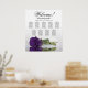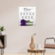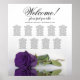 Ce somptueux tableau de sièges mariage contient 9 tables et présente un design romantique avec un seul rose royal violet à longue tige reposant sur son côté et réfléchissant dans un bassin d'eau. Le titre, "Bienvenue - s'il vous plaît trouver votre table," est affiché au-dessus du nom du couple et de la date du mariage. Avec des places pour 90 personnes et 10 places par table, ce tableau offre suffisamment d'espace pour que les clients puissent trouver facilement leur place. Le design sophistiqué, élégant et chic ajoute un élément de grâce et de classe à votre réception de mariage.