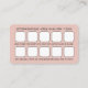 Carte de visite sur mesure avec design d'ombre rose avec typographie sans-serif, et système de récompense classique à l'arrière pour les clients de recevoir quelque chose, c'est-à-dire remise, article gratuit, etc. Cliquez sur Personnaliser pour ajouter les détails de votre entreprise, y compris le nom, le type de service, le numéro de téléphone, le site Web, l'adresse, le code qr avec du texte, les heures de magasin, les informations supplémentaires et le système de récompense au verso.