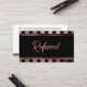 Cet élégant design présente une feuille d'or faux rose et des accents noirs audacieux. Les bords supérieurs et inférieurs d'une bande verticale audacieuse apparaissent au-dessus et au-dessous d'une large bande noire à travers le centre, qui est bordé de bandes dorées doubles roses. Au centre de l'insigne, en utilisant une jolie police de script moderne, est une superposition graphique typographique qui dit "Referral". Cette couche de texte graphique a été embellie avec le même effet or rose que j'ai utilisé dans les bandes et bordures. Au verso, j'ai mis en place tous les champs de modèle que vous aurez besoin d'offrir les détails et les termes à vos clients. Utilisez les champs modèles pour ajouter vos propres détails et apporter les modifications de libellé nécessaires. Vous pouvez également cliquer pour customiser plus loin si vous souhaitez modifier les polices, les tailles ou les positions de n'importe quel élément. // Idéal pour les propriétaires de salon, les coiffeurs, les esthéticiennes, les manicuristes et les techniciens de l'ongle, les maquilleurs, les massothérapeutes, les entraîneurs personnels, et beaucoup d'autres dans les secteurs de la guérison et des services personnels qui apprécient honorer les aiguilles d'affaires. // N'hésitez pas à contacter si vous avez des demandes spéciales ou avez besoin d'aide customisée. // Conçu par Melody Watson pour Paper Muserie.