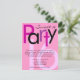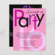Jolie invitation d'anniversaire pour la douce 16 fille ! Un style de bloc amusant et gai lettrage dans les tons rose vif et violet sur arrière - plan rose, et design funky sur le dos avec arrière - plan noir. Le design contemporain élégant est parfait pour une fille avec classe et style impressionnants. Customisez en ligne avec les détails de votre événement.