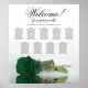Ce somptueux tableau de sièges mariage contient 9 tables et présente un design romantique avec un seul rose à long tige vert émeraude profond reposant sur son côté et réfléchissant dans un bassin d'eau. Le titre, "Bienvenue - s'il vous plaît trouver votre table," est affiché au-dessus du nom du couple et de la date du mariage. Avec des places pour 90 personnes et 10 places par table, ce tableau offre suffisamment d'espace pour que les clients puissent trouver facilement leur place. Le design sophistiqué, élégant et chic ajoute un élément de grâce et de classe à votre réception de mariage.