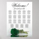 Améliorez l'élégance, le raffinement et le charme de votre réception de mariage avec ce magnifique tableau de sièges. Ce superbe design floral contemporain présente un rose romantique vert émeraude à long tige reposant horizontalement et se reflétant dans une piscine d'eau sereine. Il peut accueillir jusqu'à 190 convives, assis à 19 tables avec 10 couverts par table. Le titre gracieux de la calligraphie dit "Bienvenue ! Veuillez trouver votre table" avec la place pour les noms du couple et la date du mariage en bas.
