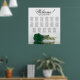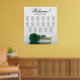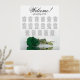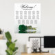 Ce beau tableau de sièges mariage dispose de 17 tables et d'un design exquis qui présente un rose solitaire de couleur vert émeraude profond et à longue tige couché horizontalement, réfléchissant sur un bassin d'eau. Le titre est écrit en calligraphie de script et dit "Bienvenue !" avec les noms du couple et la date du mariage en bas. L'agencement des places est traditionnel et peut accueillir 170 personnes avec 10 places par table. Ce tableau de sièges romantique, élégant et étonnant est un beau geste pour accueillir vos invités mariages et les aider à trouver facilement leurs sièges à la réception.