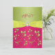 Rose, Vert, Monogramme jaune Faire-part de mariage