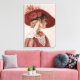 Décor élégant imprimé de toile d'art reproduit à partir de la peinture pastel originale de l'artiste californienne Sue Halstenberg. Portrait romantique d'une belle femme victorienne dans une casquette de couleur rose fleurie et robe de collier en dentelle blanche