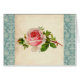 Une belle illustration rose victorienne d'une télécarte est placée sur un arrière - plan âgé avec une frontière de damassé d'aqua ou de turquoise. Une belle conception chic ou vintage minable pour la fille féminine, pourtant élégante, girly !