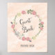Poster imprimé pour le panneau du livre d'invité mariage avec design de couronne rose et arrière - plan aquarelle.