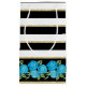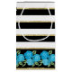 Elle est dotée d'une belle bordure rose d'eau/turquoise et d'un motif à rayures horizontales en noir, blanc et or.