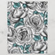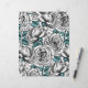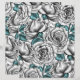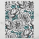 Beau motif numérique peint à la main, roses blanches avec feuilles bleues.