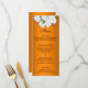 Ce menu mariage élégant et sophistiqué est la façon idéale de donner le ton à votre journée spéciale. La riche couleur orange de la carte est un choix audacieux et attrayant qui fera prendre conscience à vos invités. Les roses blanches en haut apportent une touche d'élégance et de romantisme, tandis que le simple texte noir facilite la lecture du menu. Ce menu conviendra parfaitement aux couples qui souhaitent créer un mariage mémorable et élégant. La couleur orange symbolise la passion et l'amour, tandis que les roses blanches représentent la pureté et l'innocence. La combinaison de ces deux couleurs crée une atmosphère romantique et magnifique, parfaite pour un jour de mariage. Ce menu est également très polyvalent et peut être customisé avec vos propres détails de menu mariage pour la réception. Peu importe la façon dont vous choisissez de le customiser, ce menu mariage orange aux roses blanches est sûr d'être un complément magnifique et mémorable à votre journée spéciale.
