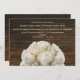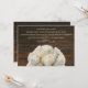 Un faire-part de mariage avec une image de roses blanches au fond sur un arrière - plan de bois d'écorce brun foncé. Personnalisez le texte avec les détails de votre occasion.