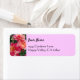 De beaux roses rayés roses et blancs fleurissent dans cette photographie florale d'art sur un arrière - plan rose, avec votre nom en lettres de script, et adresse en lettres vintages.