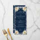 Accentuez votre décor en ajoutant une carte menu. Alors que vos invités attendent avec impatience l'entrée de la mariée et du marié ou la présentation de l'invité d'honneur, ils peuvent trouver une carte de menu dans leur cadre ajoute une touche agréable. Personnalisez et créez votre menu en ajoutant et en modifiant le texte dans les champs fournis. Vous pouvez modifier le style de police, la taille et la couleur, le type de papier, ainsi que la couleur arrière - plan.