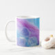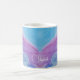 Une belle abstraite originale faite d'encre d'alcool. Les couleurs utilisées sont bleu azur, framboise avec des reflets en laiton. Lorsque les couleurs ont été appliquées sur le substrat synthétique, ils se sont mélangés par endroits et ont fait de magnifiques tons cyan et violet. Cette tasse a un modèle pour un nom. Modifiez facilement le modèle à votre nom désiré. Roses Bleus Violet Nommés Mug De Café.