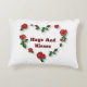 De jolies roses rouges forment un coeur sur ce coussin d'accent de la Saint-Valentin. Le design cardiaque rose est présenté de chaque côté du coussin avec un arrière - plan blanc. Sur le côté on lit "Je t'aime" et sur l'autre côté on lit "Les câlins et les baisers". Parfait coussin à décorer avec ou donner à quelqu'un de spécial pour la Saint Valentin!