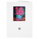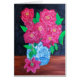 La peinture à l'huile originale par l'artiste, Susan Payne-Trutna des roses roses dans un vase chinois est décrite sur cette carte de note.
