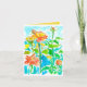 Une carte de remerciements colorée et lumineuse décorée d'un jardin de roses jaunes oranges et de fleurs sauvages jaunes dessinés à l'encre et à l'aquarelle avec un arrière - plan turquoise. Belle façon d'envoyer une note de remerciement!