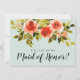 Elégant Will You Be My Maid Of Honor carte design avec roses d'aquarelle rouge, feuillage vert sur un arrière - plan à la menthe.