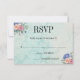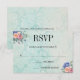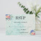 Une carte RSVP de mariage rustique, avec un thème floral, chic et chic. Le design se compose d'un papier peint vert damassé défraîchi, avec des bouquets de roses à fleurs et des hydrangées dans le coin opposé. Le verso du modèle offre de la place pour une adresse de site Web mariage (si nécessaire, si ce n'est pas juste supprimer).