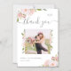 Cette carte magnétique de remerciement de mariage, simple et élégante, présente des roses roses romantiques avec des feuilles vertes et un texte gris clair sur fond blanc pour un aspect à la fois tendance et d'inspiration ancienne.