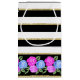 Roses rose et bleu sur le sac cadeau noir, blanc,