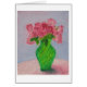 Ces roses intoxicatingly parfumés sont venus d'un rosier d'escalade en fleur parfaite un jour ensoleillé de juin Chicago. Cette affiche a été créée de ma peinture à l'huile originale, qui accentue les roses par l'application lourde et fortement texturisée de peinture à plusieurs nuances de rose et le rouge. Les courses jaunes se sont mélangées dans le signe de vase aux tiges des roses tout en suggérant le soleil de milieu d'après-midi qui a filtré à l'aide du verre vert quand cette peinture a été créée. Les contacts du rose à l'arrière-plan de lavande aussi bien que les courses épaisses de rose-clair dans le dos de la table, du vert à la droite du vase, et d'un rose plus foncé dans l'aide de premier plan harmonisent et unifient ce morceau parce qu'ils répètent les couleurs dans les fleurs et le vase.