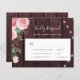 Carte RSVP de mariage rustique avec choix de repas avec un bouquet rose d'aquarelle rose vif avec feuilles et feuillage verdoyants et un script de calligraphie à la main élégant sur un arrière - plan de bois de grange bordeaux foncé avec lumières à cordes.++++++++++++++++ Adjudication et papeterie disponibles dans la collection. +++++++++++ VEUILLEZ LIRE CECI AVANT D'ACHETER ! Il s'agit d'une carte économique imprimée sur une feuille papier (chaque feuille comporte une carte). ++++ Pour un rapport qualité-prix optimal, notre conseil est de choisir le type de papier Semi-Gloss (il est assez épais pour être utilisé pour la papeterie) ++++ Si vous avez besoin d'enveloppes, choisissez l'OPTION ENVELOPE. +++ Vérifiez toutes les informations et l'orthographe de votre texte car vous recevrez exactement ce que vous voyez - personne d'autre ne vérifiera quoi que ce soit avant l'impression. ++++ Cette carte est conçue pour la taille 4,5" x 5,6". Dans le coque vous choisissez une autre taille de la carte et le texte sort de la page, tout doit être corrigé avant d'ajouter le produit au panier. Demandez de l'aide au service Live Design.