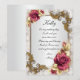 Joli cadre de motifs de feuilles d'or et de roses rouges. La journée parfaite de chaque mariée inclut ses amis. À qui faites-vous confiance pour faire un discours et accomplir des tâches comme vous aider à choisir les robes des demoiselles d'honneur afin que votre projet de mariage se déroule sans accroc ? Qu'il s'agisse de votre sœur responsable, de votre cousine, de votre nièce ou de votre meilleure amie, cette invitation "Will You Be My Maid of Honor" est un moyen amusant de demander. Personnalisez la carte en modifiant le texte dans les champs prévus à l'avant et à l'arrière. Vous pouvez changer le style, la taille et la couleur de la police, ainsi que le type et le style de papier.
