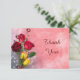 Cartes de remerciement élégantes et personnalisées. Cartes de remerciement élégantes et glamour. Avec une photographie d'arrangement de bouquet de 3 belles roses rouges à demi ouvertes et 2 roses jaunes avec des perles scintillantes et des images de fleurs imprimées sur un joli fond rose flou bokeh. Ces cartes de remerciement florales chic, fantaisistes, sophistiquées et modernes sont décorées/imprimées d'un seul côté et ont été laissées vierges au verso pour que vous puissiez écrire votre propre message de remerciement personnel. Celles-ci conviennent particulièrement pour les événements de printemps et d'été, mais peuvent être utilisées pour toutes les saisons. Ces cartes tendance, à la mode, contemporaines, classe et romantiques sont le moyen idéal pour dire merci et sont parfaites pour toutes les occasions. Si vous avez besoin d'aide pour personnaliser votre produit, ve