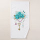 Clé d'or antique aux roses turquoise tendance décorée de feuilles d'or blanc et de perles rose et bleu. Couleur tendance. Rose turquoise. Blanc doré. Tiffany bleu.