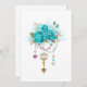 Clé d'or antique aux roses turquoise tendance décorée de feuilles d'or blanc et de perles rose et bleu. Couleur tendance. Rose turquoise. Blanc doré. Tiffany bleu.