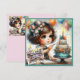 Une jolie fille décorant un gâteau d'anniversaire, célébrant l'anniversaire de Roslyn. Les salutations sur la carte sont "Joyeux Anniversaire Roslyn". Sur le dos de la carte se trouve une petite version de l'image avant, et beaucoup de place pour écrire un message. Fabriqué avec l'aide d'AI Bing.