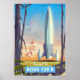 Ross 128 B Affiche de science-fiction d'un navire-fusée assis à la surface de la planète pendant qu'un alien couchait le soleil.