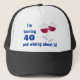 " Je tourne 40 et wining à son sujet" est le verbage sur ce casquette. Le graphique est deux verres de vin rouge. Ce casquette peut être customisé pour avoir le nom d'une personne et l'âge peut être changé pour adapter votre besoin.